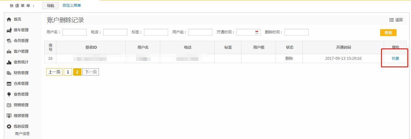 第三步:找到需要恢复的账号点击【恢复】即可。