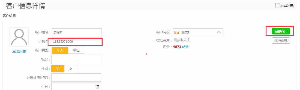 第三步:【编辑客户】修改手机号后【保存客户】;